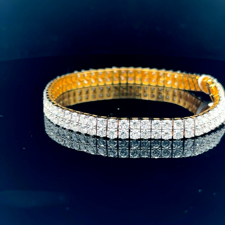 Elevate your style with our enchanting 18 carat yellow gold bracelet adorned with mesmerizing lab-grown diamonds. Weighing a substantial 19.5 grams, this bracelet features a unique design with a double layer of circle diamonds, it’s a timeless addition to your jewelry collection. Budget: $5000+ Gender: unisex